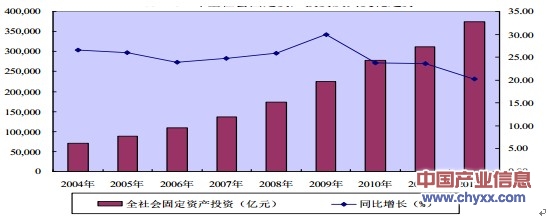 2004-2012年全社會(huì )固定資產(chǎn)投資及其變化趨勢