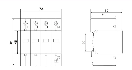 采用35mm的標準導軌安裝,連接銅質(zhì)導線(xiàn)為2.5~16mrf12。
