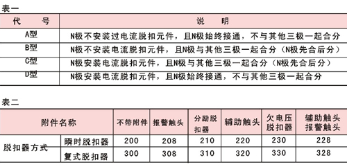 訂貨時(shí)必須寫(xiě)明:產(chǎn)品名稱(chēng)、型號、規格、極數、脫扣方式及附件名稱(chēng)、保護特性、額定電流、額定剩余動(dòng)作電流,訂貨數量。