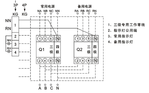 開(kāi)關(guān)工作有三個(gè)狀態(tài)位置供用戶(hù)選擇:常用電源(N)合、雙分、備用電源(R】合,開(kāi)關(guān)具