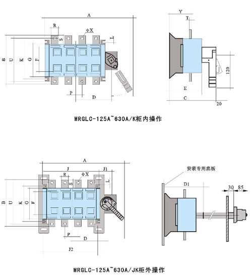 | A | B | C | D | D1 | E | G | J | J1 | J2 | K | P | R | S | T | U | ΦX | Y | L | F | |