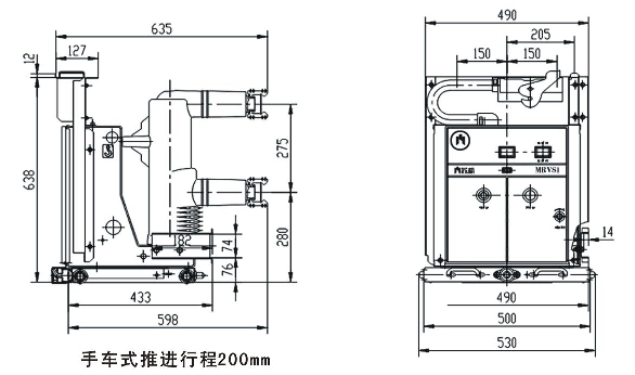 手車(chē)式MRVSl-12斷路器650寬外形尺寸圖