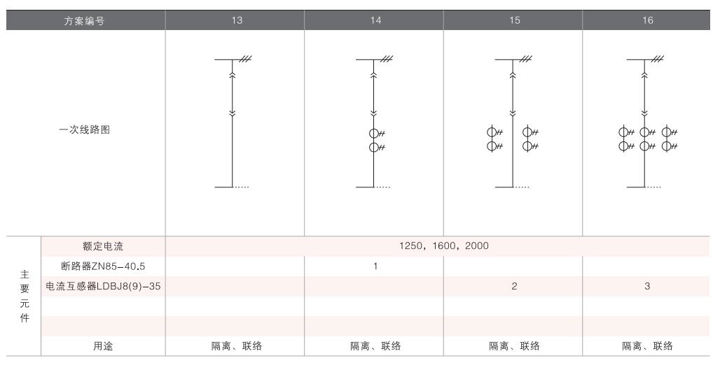 開(kāi)關(guān)柜的一次接線(xiàn)方案有27個(gè)常用典型方案,能滿(mǎn)足用戶(hù)電纜進(jìn)出線(xiàn)、架空進(jìn)出線(xiàn),聯(lián)絡(luò )級測量、保護等的需要,若有不同與現有方案的其他方案的需要,請與廠(chǎng)方協(xié)商。