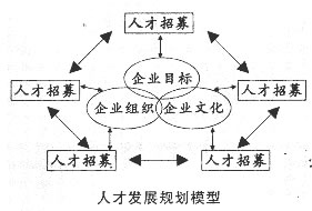 企業(yè)目標、企業(yè)組織、企業(yè)文化是人才發(fā)展規劃的先決條件,這些內容在企業(yè)發(fā)展規劃中需予以明確和規定。人才發(fā)展規劃本身由5個(gè)模塊組成,即:人才招募、績(jì)效評價(jià)、人才激勵、人才發(fā)展、人才退出。這5個(gè)模塊構成了一個(gè)循環(huán),并與企業(yè)目標、企業(yè)組織和企業(yè)文化之間發(fā)生相互作用。該模型的基本原理是Dr.W.Edwards Deming質(zhì)量管理PDCA循環(huán),P (Planning),做事要有計劃;D(Doing),按照計劃實(shí)施;C(Checking),檢查執行情況;A(ACHEIg),經(jīng)驗反饋與改進(jìn)。結合人力資源發(fā)展與管理工作的內容,可以建立如圖所示的基本模型。